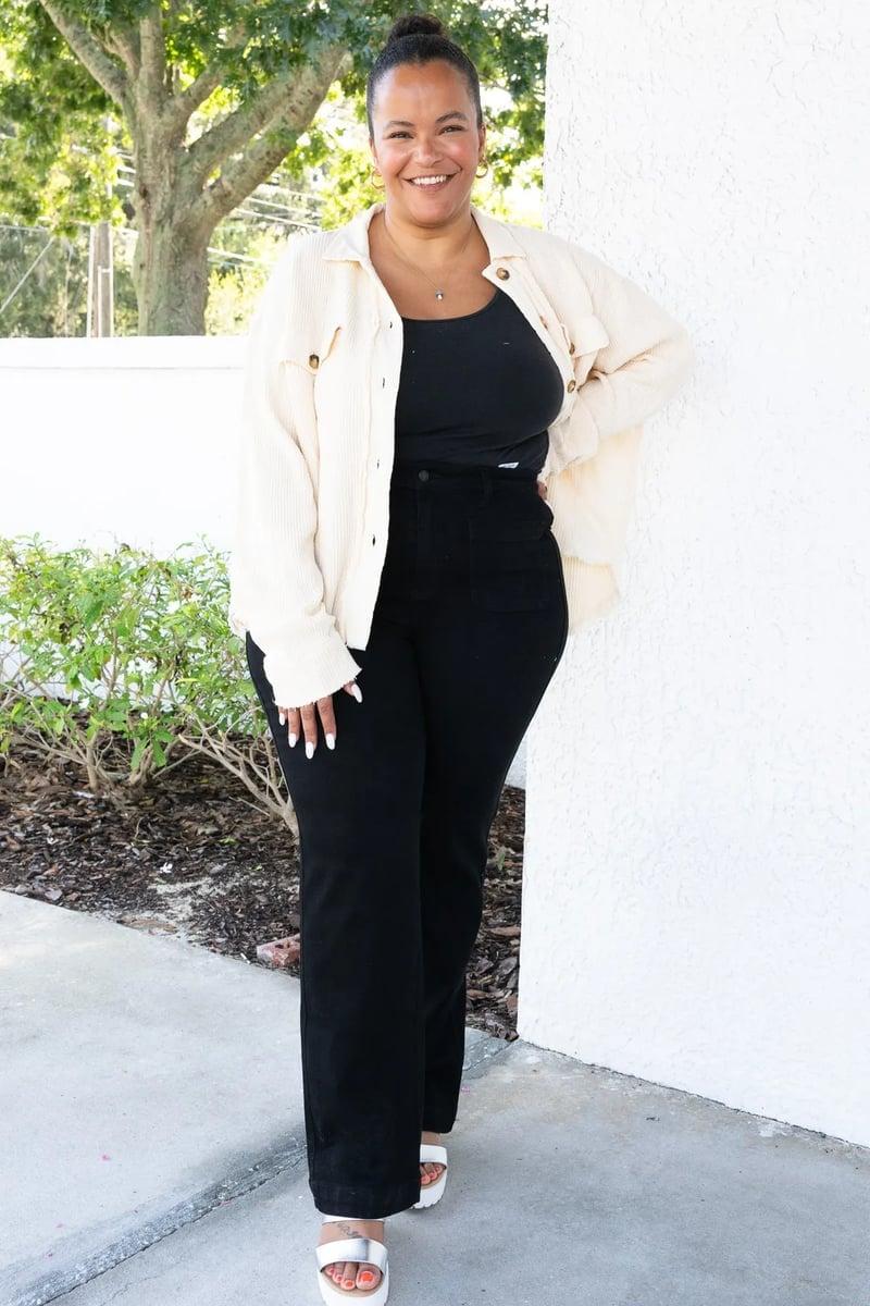 - Lett kompresjon, eksklusivt, skulpturelt kompresjonsdenim som holder deg inne og glatter deg ut.