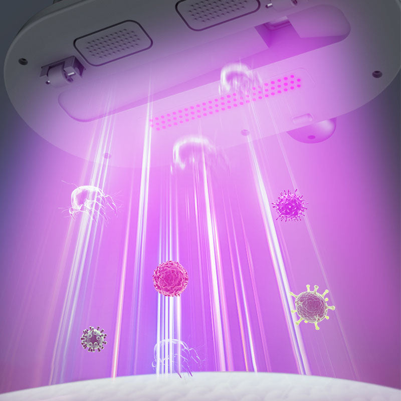 UV-C ultrafiolette stråler trenger gjennom overflaten for raskvirkende midd og sterilisering. Høyfrekvent risting rister effektivt ut støvmidd.