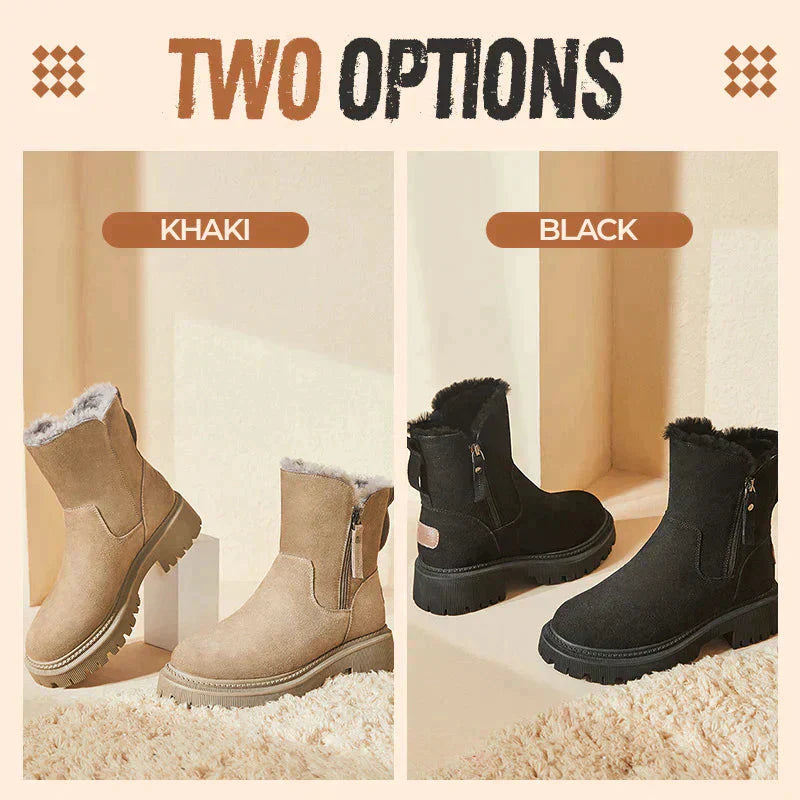 Den perfekte kombinasjonen av funksjon og stil kommer til syne i disse snøstøvlene, med tykt fleecefôr og brettbar design. Glidelåslukningen på siden gjør det enkelt å ta på og av.