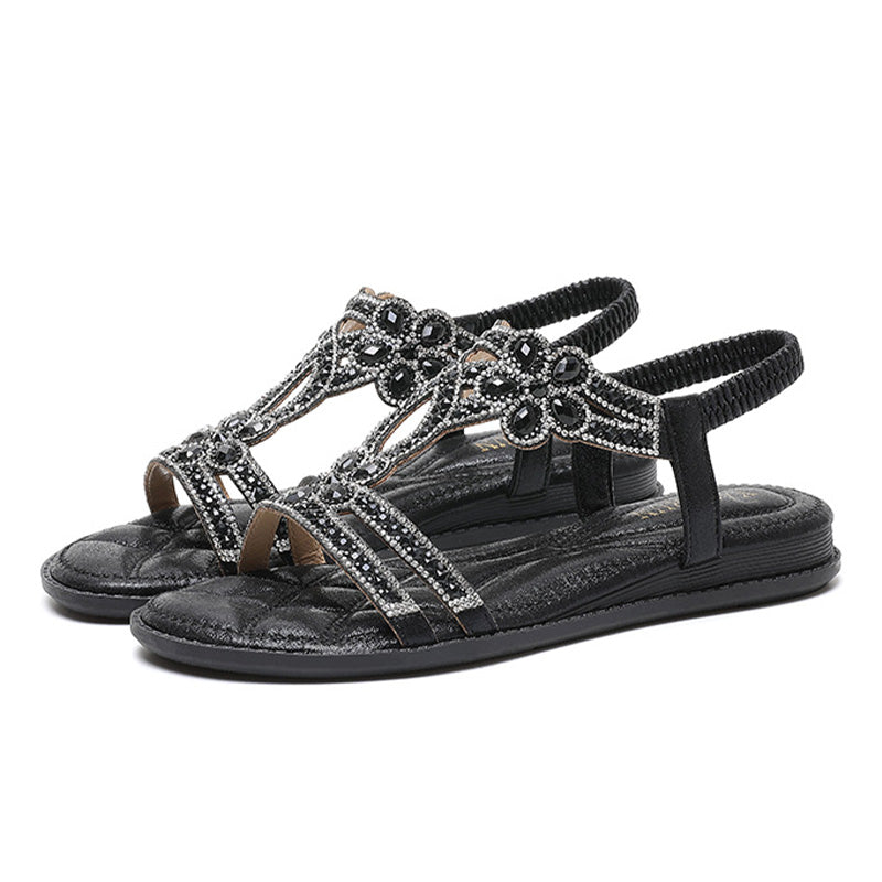 🔥💖 2025 Nytt sommersalg - 49%OFF 💖 Flate sommersandaler for kvinner med rhinestones