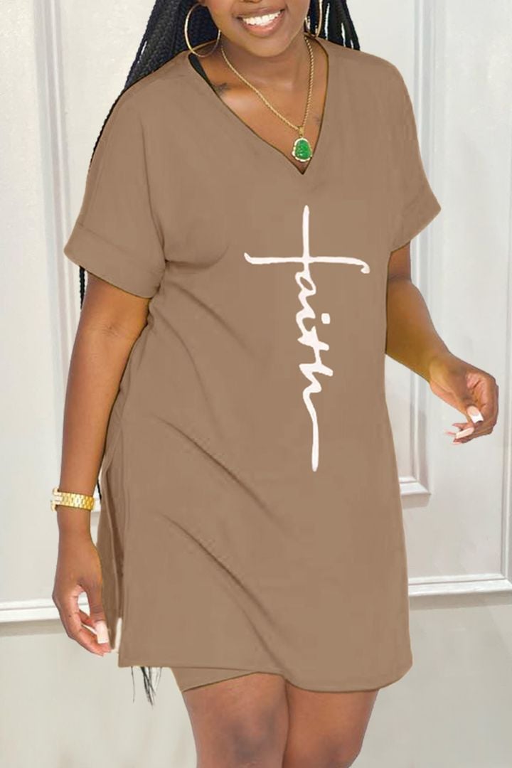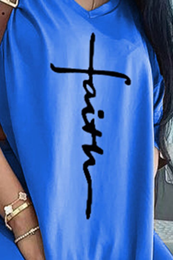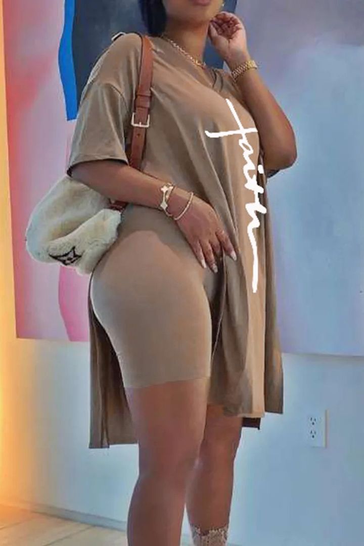 49% Rabatt🎉T-skjorte og shorts med bokstavtrykk og delt side i V-hals, 2-delt sett