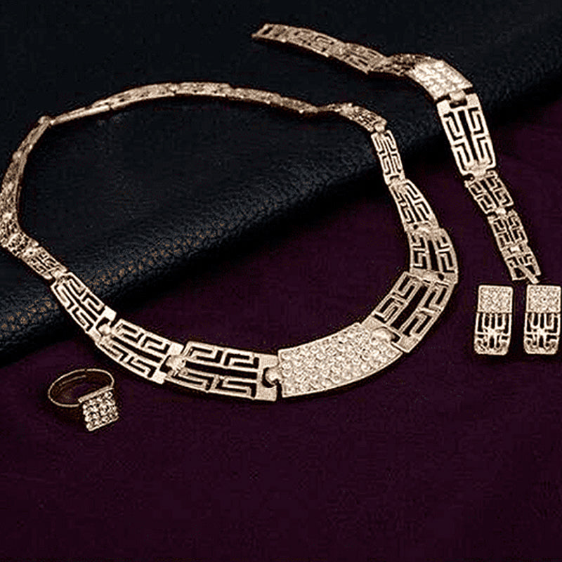 ELEGANT & VINTAGE: Dette luksuriøse smykkesettet kombinerer utsøkt håndverk med vintageinspirasjon, og gir et unikt og sofistikert utseende for spesielle anledninger eller hverdagslig eleganse.