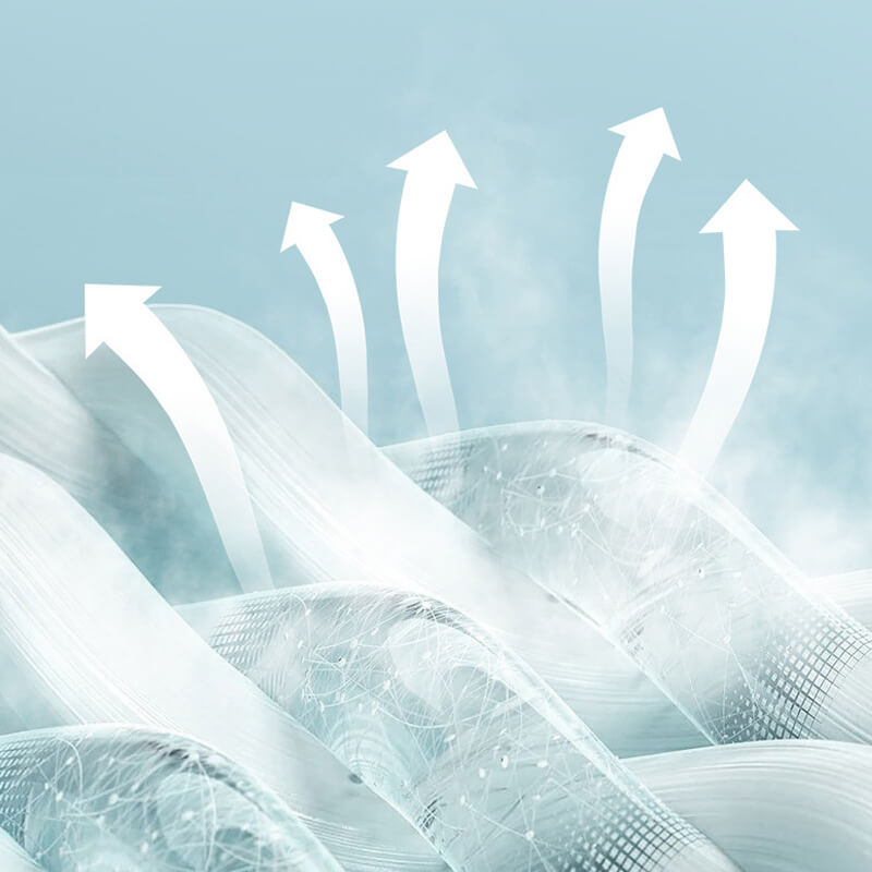 Pustehull > 1000 for å spre varme og transportere bort svette. Uavhengig støtte for pungen, bedre varmespredning, mer behagelig og avslappende å ha på seg. Spesielt egnet for personer i bevegelse, stillesittende og svette.