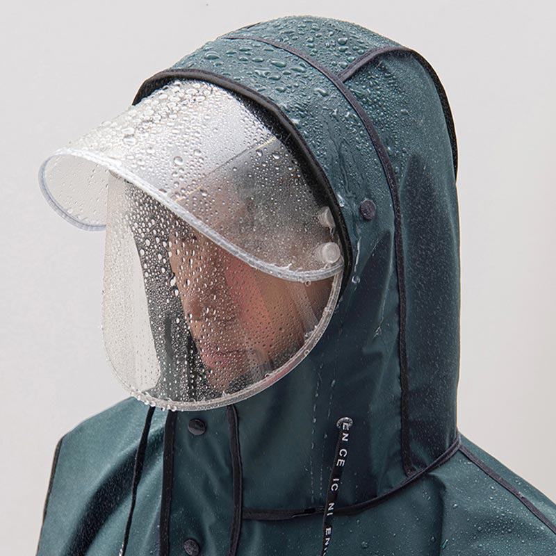 BETENKSOM BESKYTTELSE: Den medfølgende transparente masken og avtagbare hanskene gir økt sikkerhet og allsidighet, og de justerbare snorene på hetten gir ekstra beskyttelse mot vind og regn for maksimal komfort.