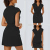 STILIG V-HALS MED KAPPEERMER - Toppen har en smigrende V-hals og blazerkrage som gir en perfekt balanse mellom stil og dekning. Designet med ermer med hette sikrer pusteevne, noe som gjør den ideell for varmt vær eller aktive dager.