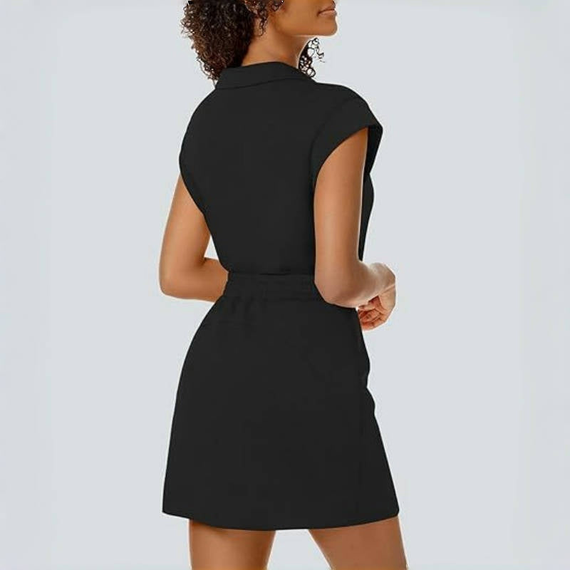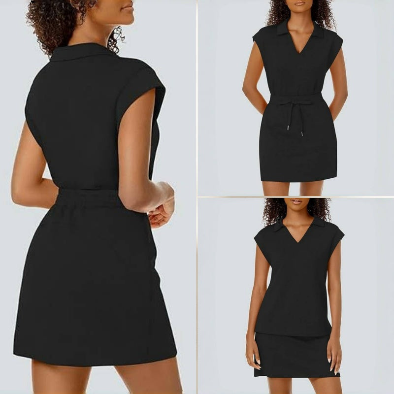 TRYGT OG SPORTY SKJØRT - Det matchende skjørtet har praktiske, innebygde sikkerhetsshorts for bekymringsfri bevegelse. Den justerbare snørebåndet i midjen gir en tilpasningsdyktig, sikker passform for alle kroppstyper og gjør at du kan bevege deg fritt uten begrensninger.