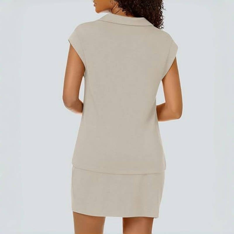 2-delt sett med topp og skjørt for kvinner med hetteermer