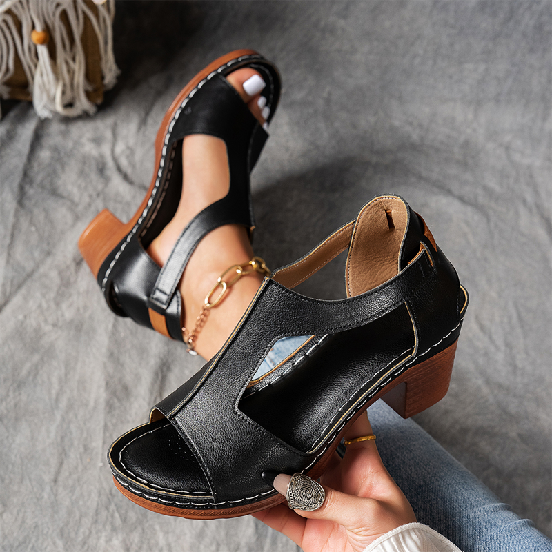 Pakken inkluderer: 1 par * damesandaler med chunky hæl og åpen tå