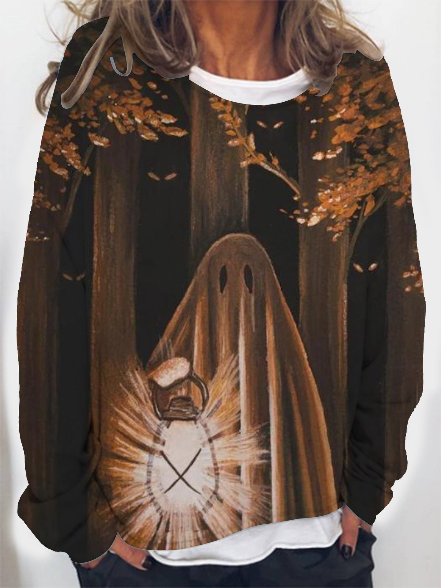 🔥Kjøp 2 og få gratis frakt-Genser med spøkelsesmaleri og stearinlystrykk