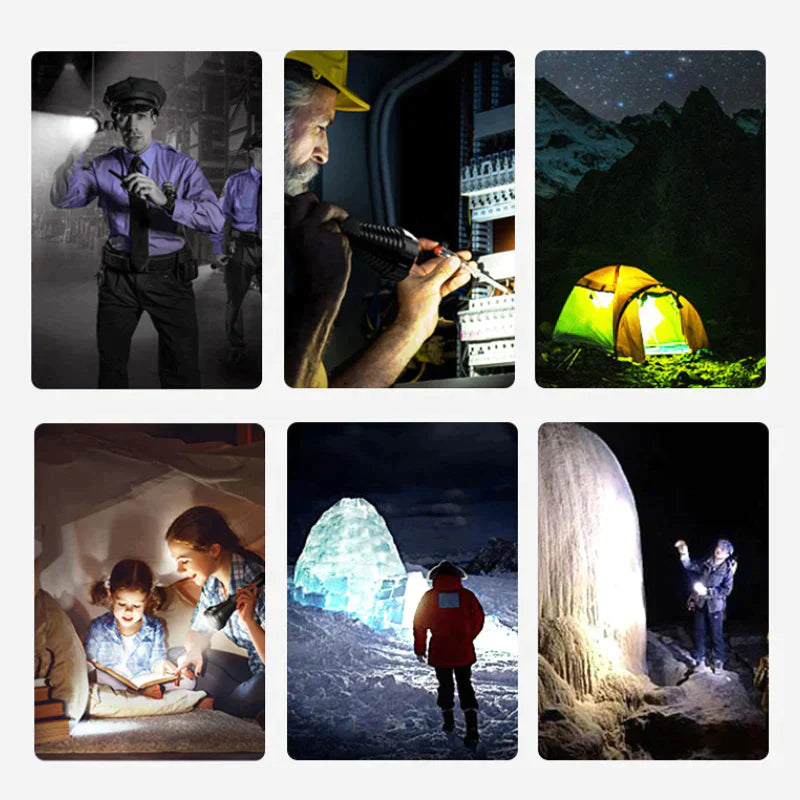 【Super Power XHP50 LED-lommelykt】Denne superkraftige LED-lommelykten bruker XHP50 kjernekjernen, med en levetid på opptil 10 000 timer, den kan gi en stabil 1000 lumen maksimal effekt og 1300 fot/500m stråleavstand. Dette gjør LED-blitsen til en av supersterke lommelykter tilgjengelig.