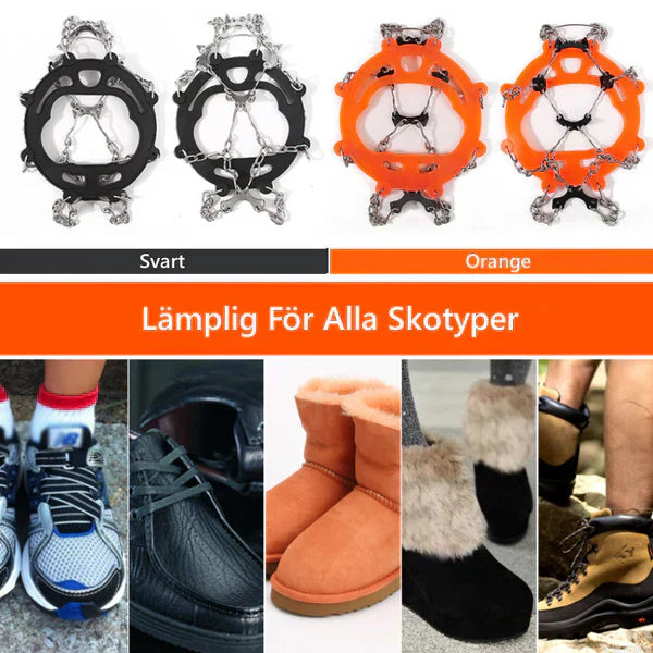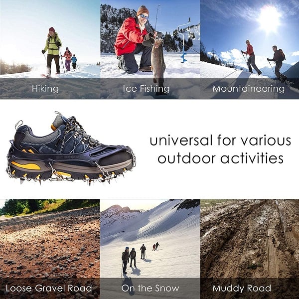 Bredt bruksområde og unisex: Kan brukes i skrått terreng, på islagte veier, isete oppkjørsler, gjørme og vått gress, farlige deler av stien osv. Perfekt for terrengløping, fotturer og isfiske.