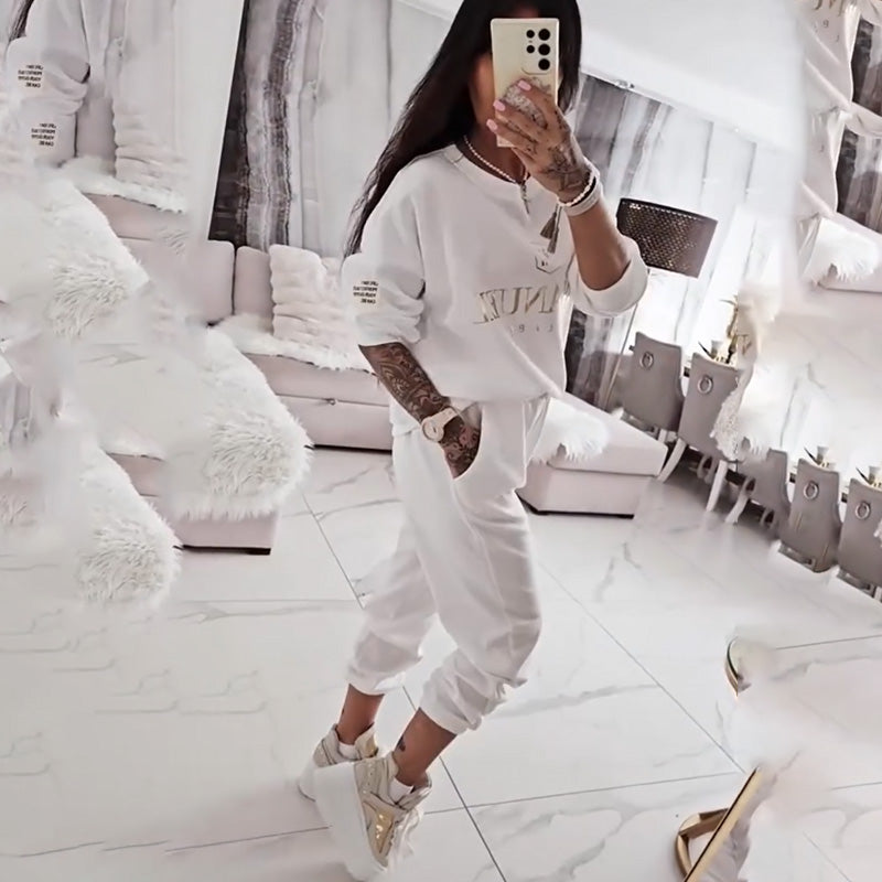 STILIG SETTDESIGN – Dette settet med langermet topp og bukser for kvinner har en avslappet passform og et flatterende snitt. Det koordinerte designet gjør det enkelt å skape et elegant og uanstrengt look, perfekt for en rekke anledninger og kroppstyper.