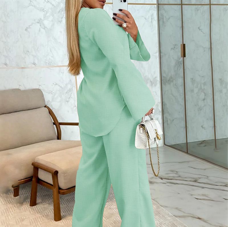 Ensfarget langermet genser og løse bukser med løstsittende snøring for kvinner