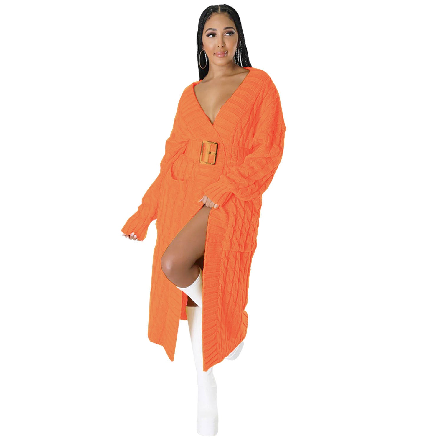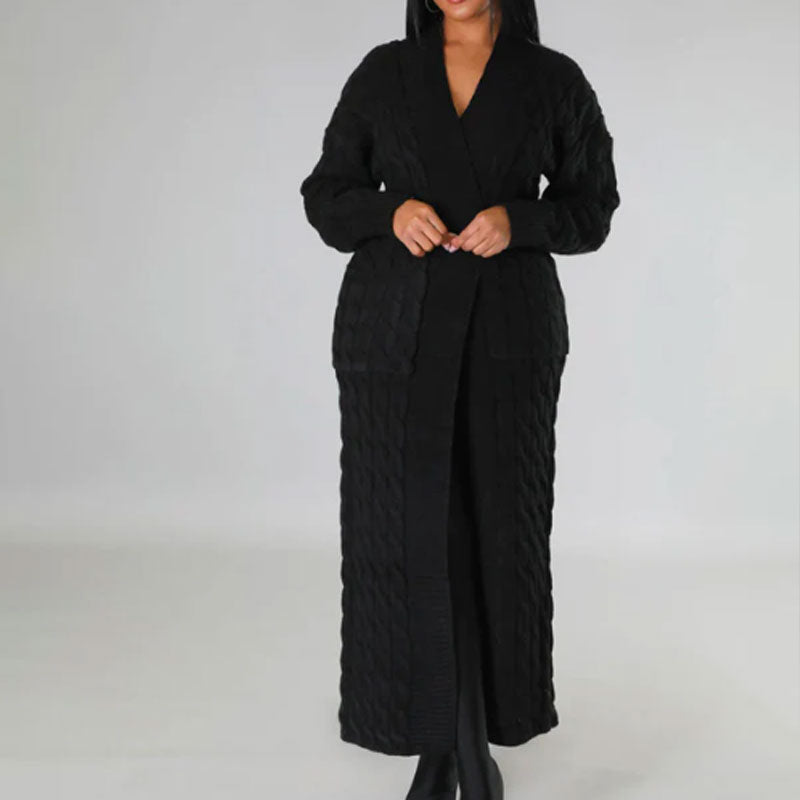Vintage Fashion Twist håndstrikket cardigan lang jakke