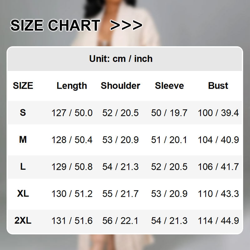 INKLUDERENDE STØRRELSER: Denne kåpen er tilgjengelig i størrelsene S - 2XL og passer til et bredt spekter av kroppstyper, noe som sikrer en flatterende og behagelig passform for alle.