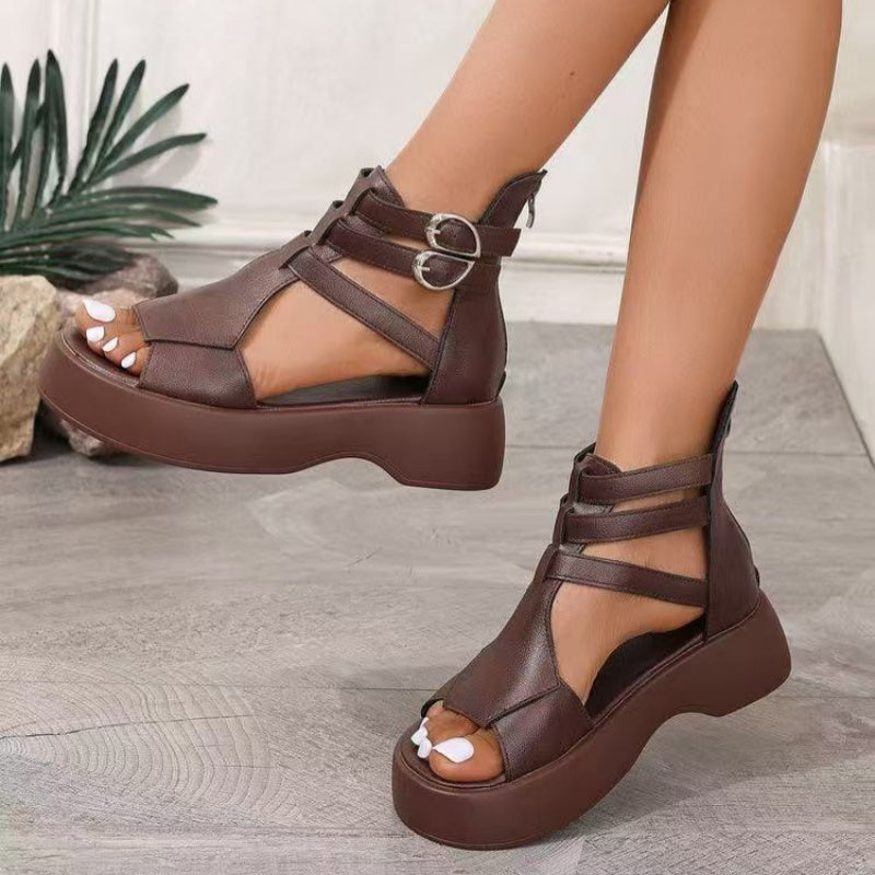 Ortopediske sandaler for kvinner med plattform og kile i mykt skinn
