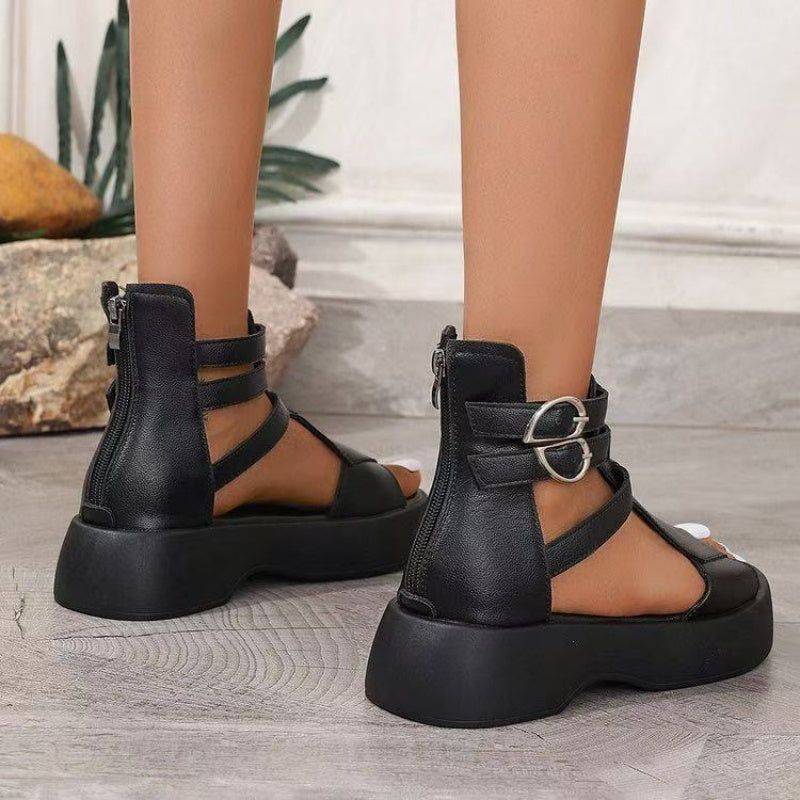 Pakken inkluderer: 1 par* sandaler for kvinner med åpen tå og flere remmer og tykk såle