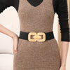 Bredde, enkle design og gylden metalltilbehør til dette kvinnelige tøyelige beltet gjør det til et veldig praktisk tilbehør. Det kan enkelt endre formen og utseendet til klær, og legge høydepunkter til enkle antrekk. Enten paret med et skjørt, kjole eller bukser med høy midje, kan det vise frem den beste effekten.