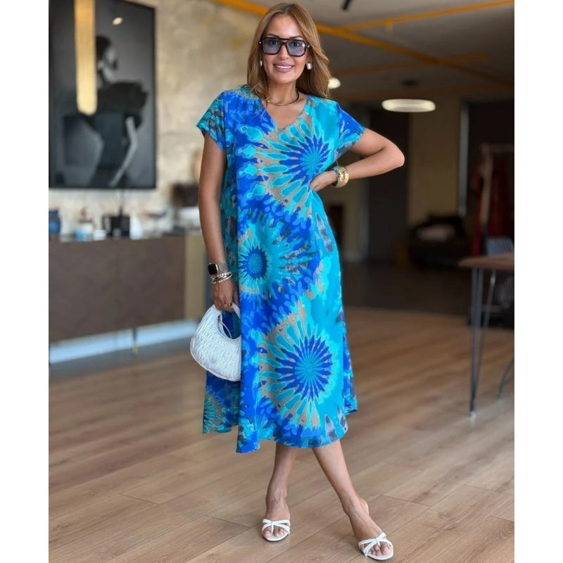 🌸 50 % rabatt på nye produkter👗Kjole med V-hals og trykk