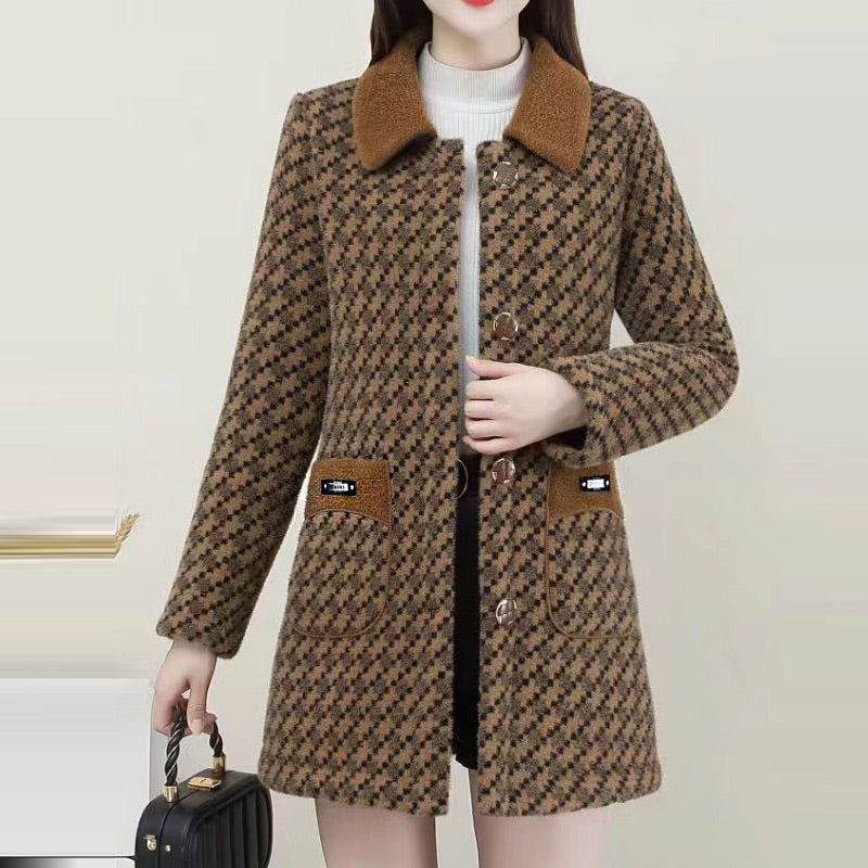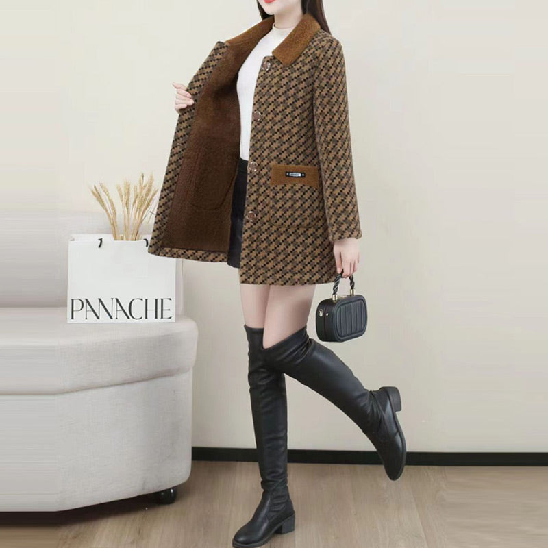 ✨ Kåpe med plysjfor i mellomlengde for kvinner, elegant og varm! 🧥❄️